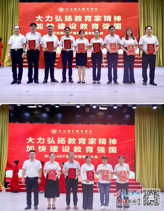 大江網(wǎng)/大江新聞客戶端訊(通訊員柯 楊、林竹君、陳璐茜)9月10日,九江理工職業(yè)學(xué)院在大禮堂舉行慶祝第40個(gè)教師節(jié)暨表彰大會。學(xué)校理事長盧炳成,黨委書記(督導(dǎo)專員)周俊,校長羅方承,常務(wù)副校長張朋,副校長馬妮、何七榮,理事長助理喬利民等領(lǐng)導(dǎo)出席,各中層部門負(fù)責(zé)人、全體教職工、學(xué)生代表1000余人參加。大會由張朋主持。
